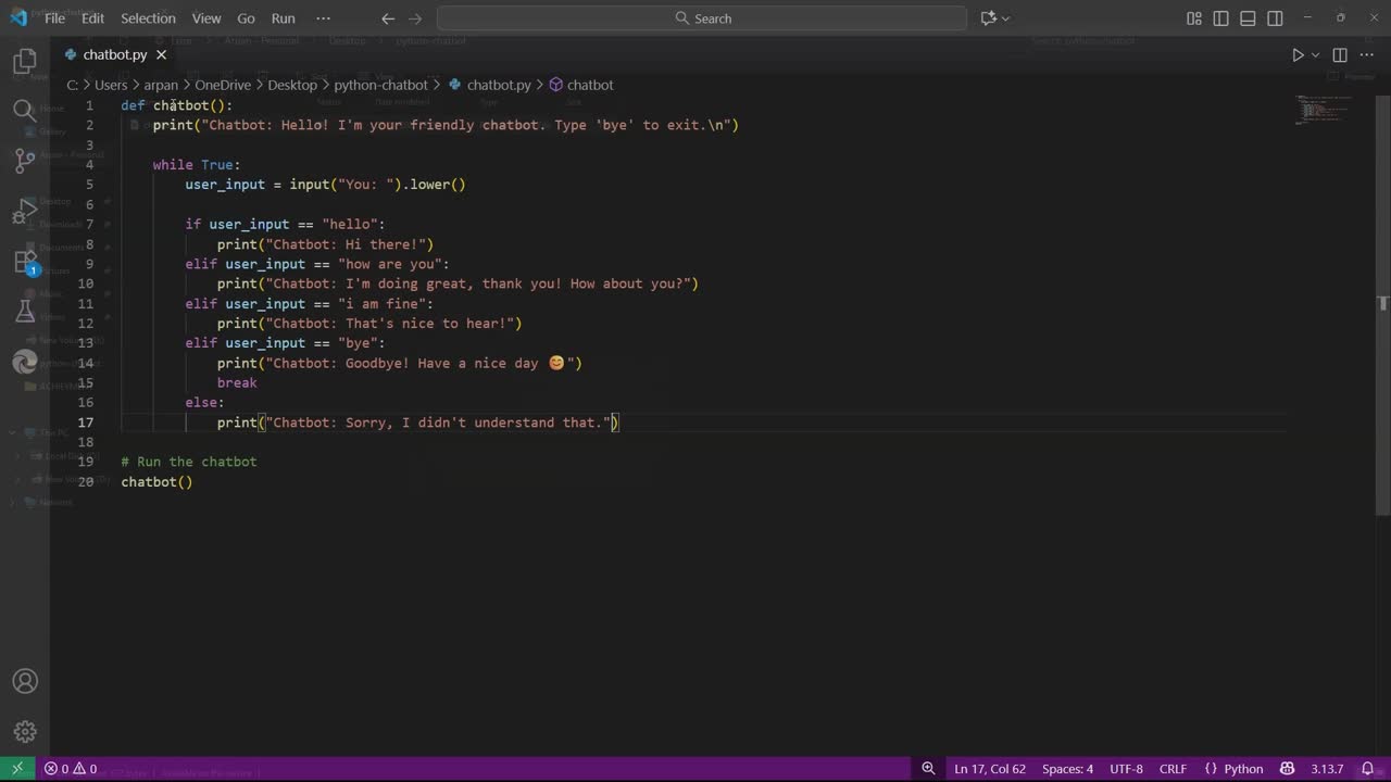 As part of my Full Stack Development Internship with CodeAlpha, I built my first project - A Basic Chatbot💻